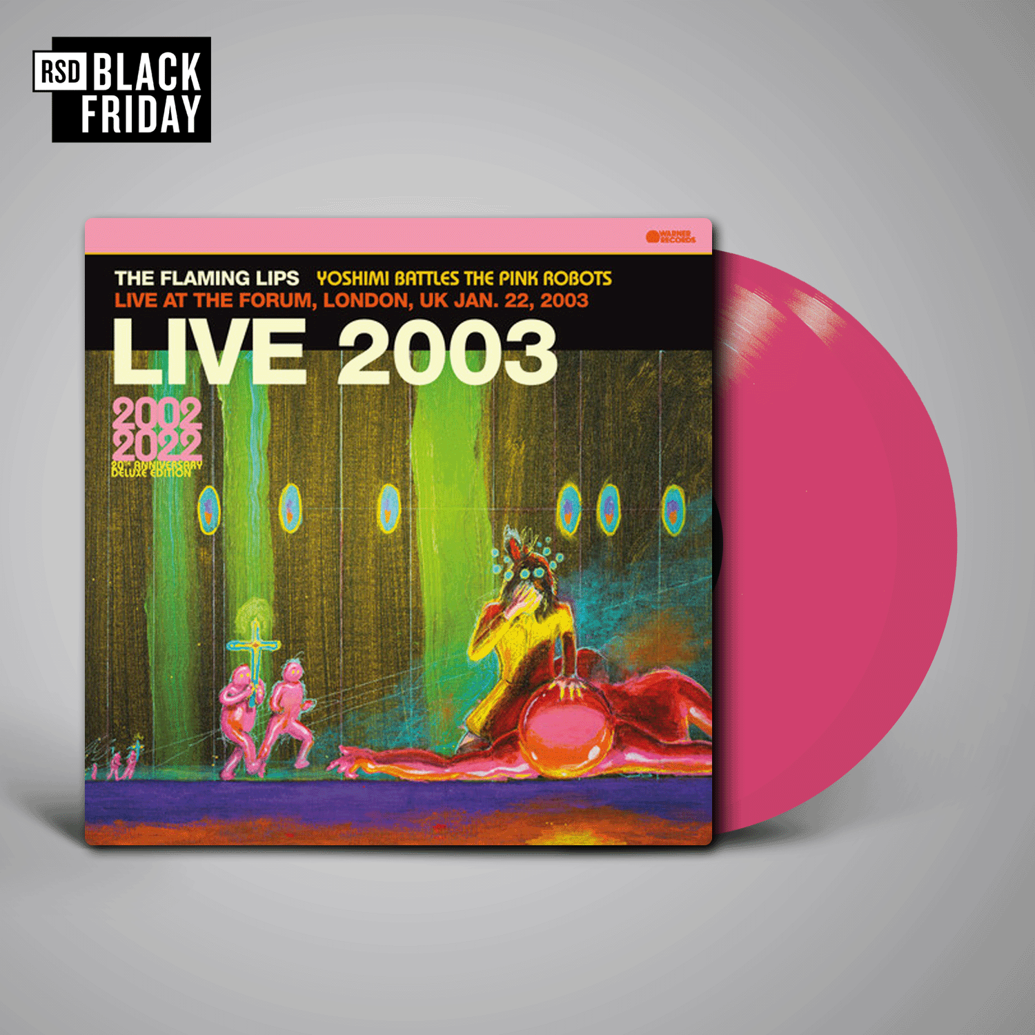 The Flaming Lips 2002 album "Yoshimi Battles The Pink Robots" was a huge album in the UK, selling over 300,000 units on it's way to Platinum certification. The success was driven by 4 hit singles, including the title track and the Lip's most popular song "Do You Realize". The band frequently toured the UK during the album cycle, playing larger venues than previous tours, and were frequent guests on several radio shows. This release is a recording of the last show of the UK dates in January 2003 at London's Forum Theatre. The 15-song show was broadcast nationally by the BBC. In addition to playing key songs from "Yoshimi" album, the set list includes fan-favorites such as "She Don't Use Jelly", "Waitin' For A Superman" and "Race For The Prize".