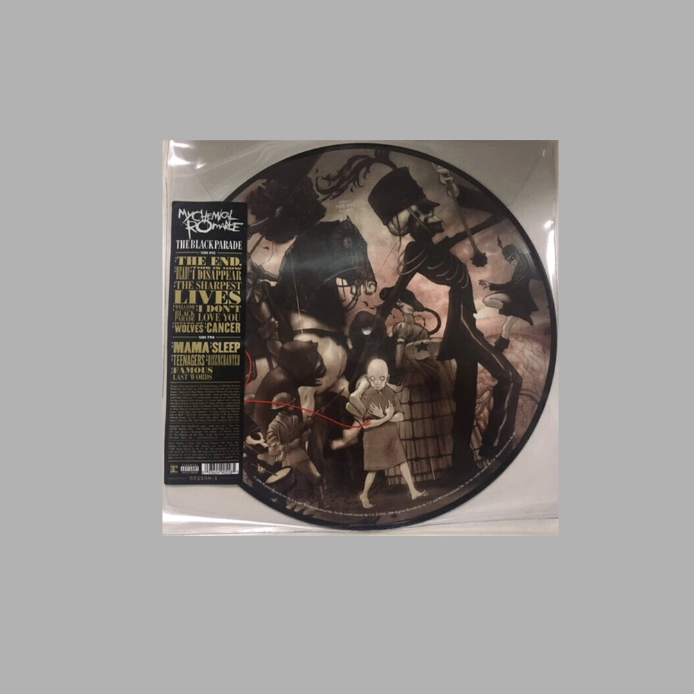 Limited picture disc vinyl LP pressing. The Black Parade, My Chemical Romance's follow-up to it's 2004 platinum major-label debut Three Cheers For Sweet Revenge, "is way more dramatic, way more theatrical, completely over the top, borderline psychotic," says Gerard Way. "It's the most pure, intense thing we've ever been involved in." Producer by Rob Cavallo (Green Day), the album is a celebration of love and death and darkness. Join The Black Parade.
